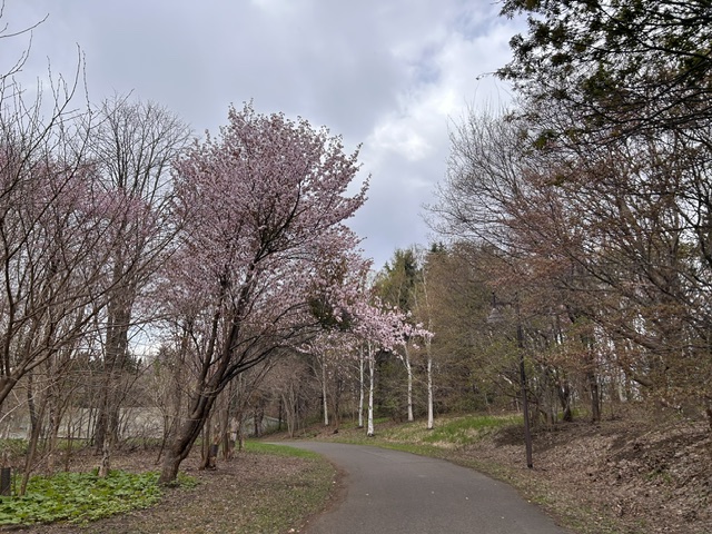 本日は天候が不安定ですが、皆さまはいかがお過ごしでしょうか。前田森林公園では園内各所のエゾヤマザクラがやっと見頃を迎えております。チシマザクラは五分咲き、ソメイヨシノは咲き始め、ヤエザクラ等はまだつぼみです。桜情報は確認次第ホームページを更新いたします。この時期のお散歩は前田森林公園でも桜を楽しめます。