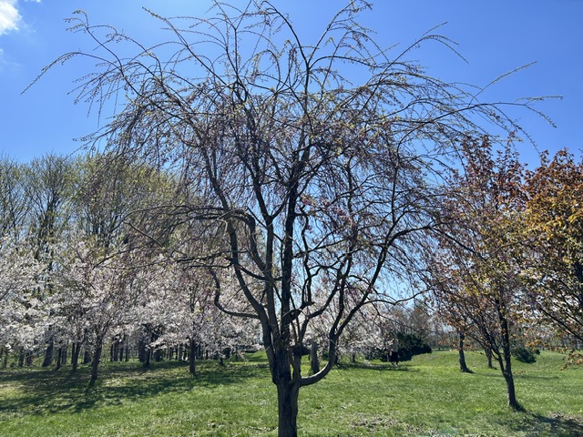 園内の桜は、現在ソメイヨシノが見頃を迎えております。シダレザクラは咲き始めです。ヤエザクラはまだつぼみですので、見頃はまだ先になります。緑色の花が咲く桜(ギョイコウ)もまだつぼみです。 ソメイヨシノの様子です。 シダレザクラは咲き始めです。見頃はもう少し先となりそうです。 おまけは、展望ラウンジから見える絶景です。天気が良い日は青空の中に見えるカナールと手稲山が凄く綺麗です。ゴールデンウイークのお出かけのご参考にしてみてください。 皆さまのお越しを心よりお待ちしております。