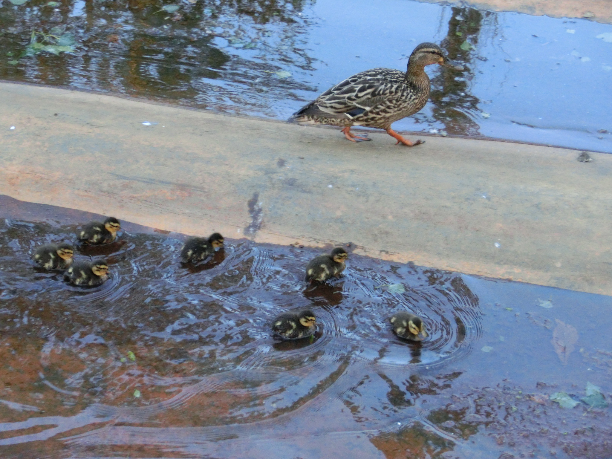 さて、カモのヒナは今日も元気に歩きまわっていたようですが、新しい親子が出てきたようです。