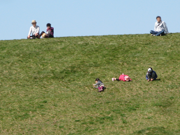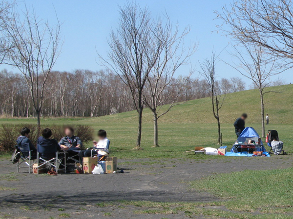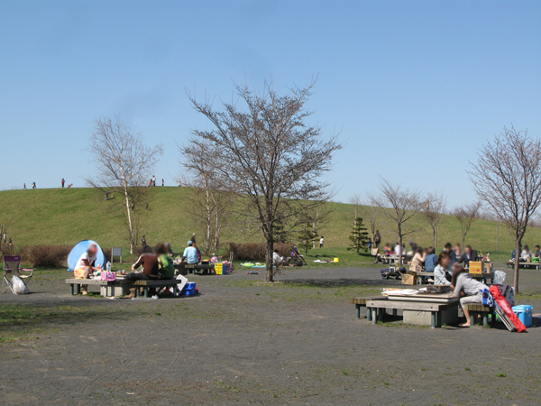 手稲山を望む丘でゆっくり座り語り合ったり、ころころ転がったり、色々な遊び方が出来る場所です。