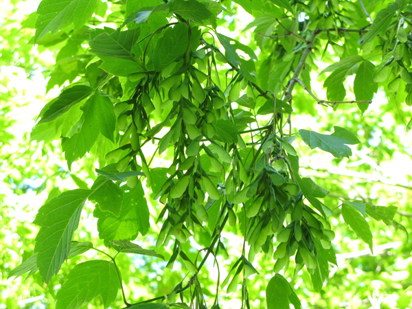 花が終わったネグンドカエデには、プロペラの羽のようなタネが房のように沢山ついていました。