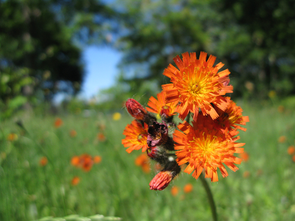 コウリンタンポポ(紅輪蒲公英)という帰化植物なのですが、緑を背景に大変映える植物です。