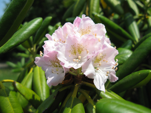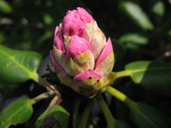 園内ではセイヨウシャクナゲの花の蕾の濃いピンク、開花した花びらの色の淡いピンクがきれいです。