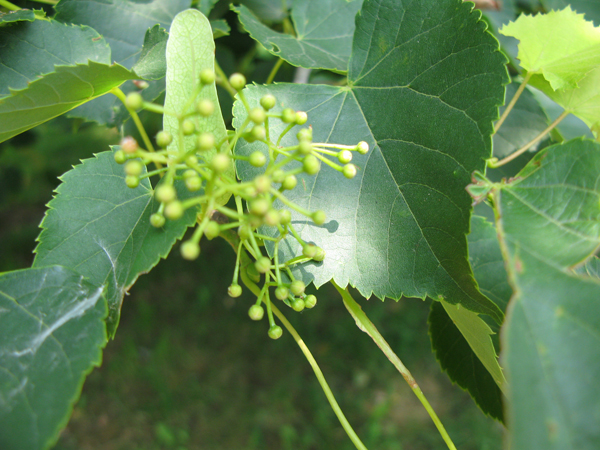 また、オオバボダイジュやシナノキの花も咲き始めました。右がオオバボダイジュ、左がシナノキです。
