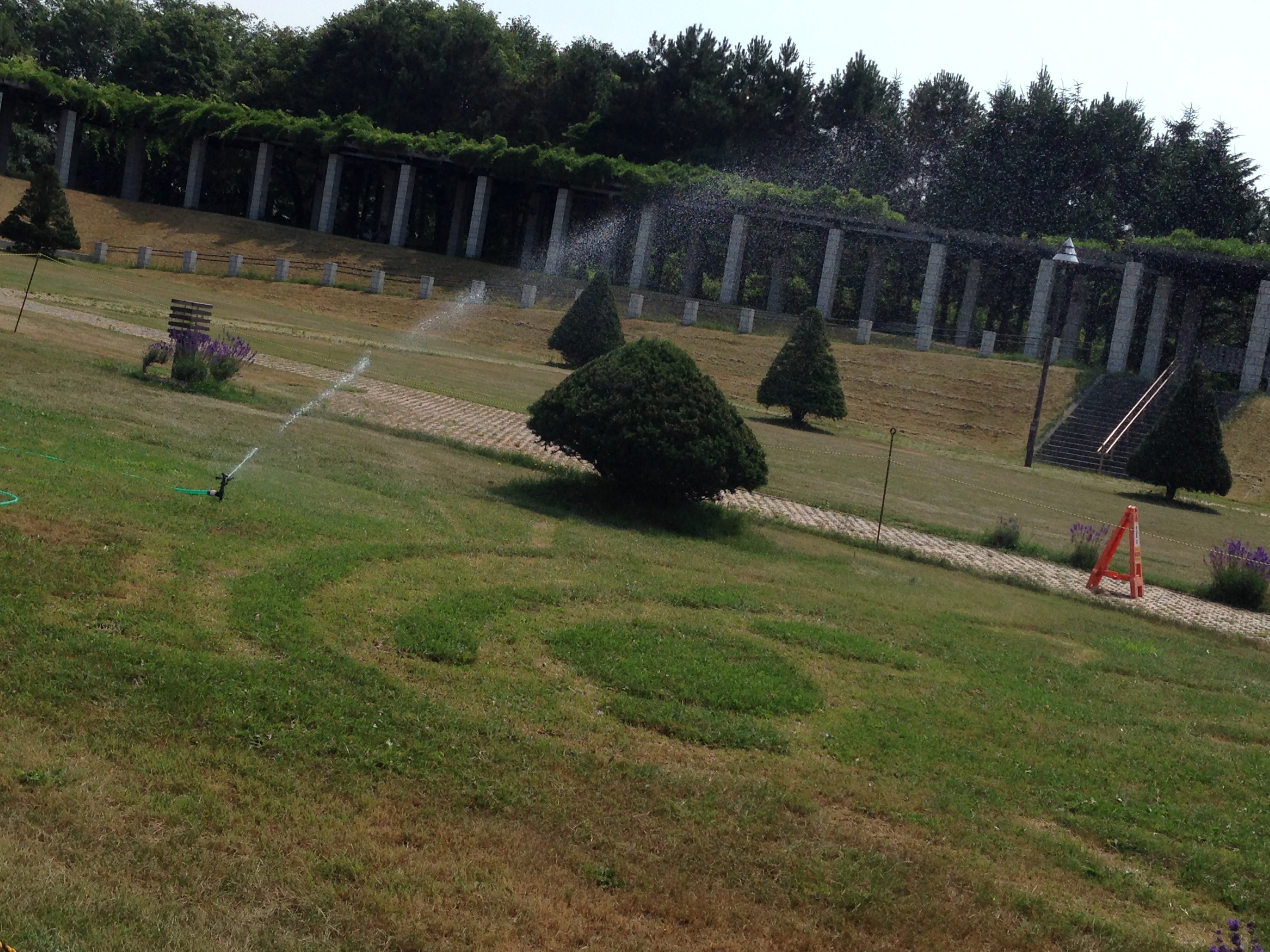 ていぬ様は水をご所望じゃ! 水をもて! というわけでございまして、晴天続きで毎日水まき作業に追われております。 自然の力のすごさ、雨の恵みのありがたさを感じて仕事ができることが喜びです。 公園にお出かけの際は熱中症対策をお忘れなく! (西宗)