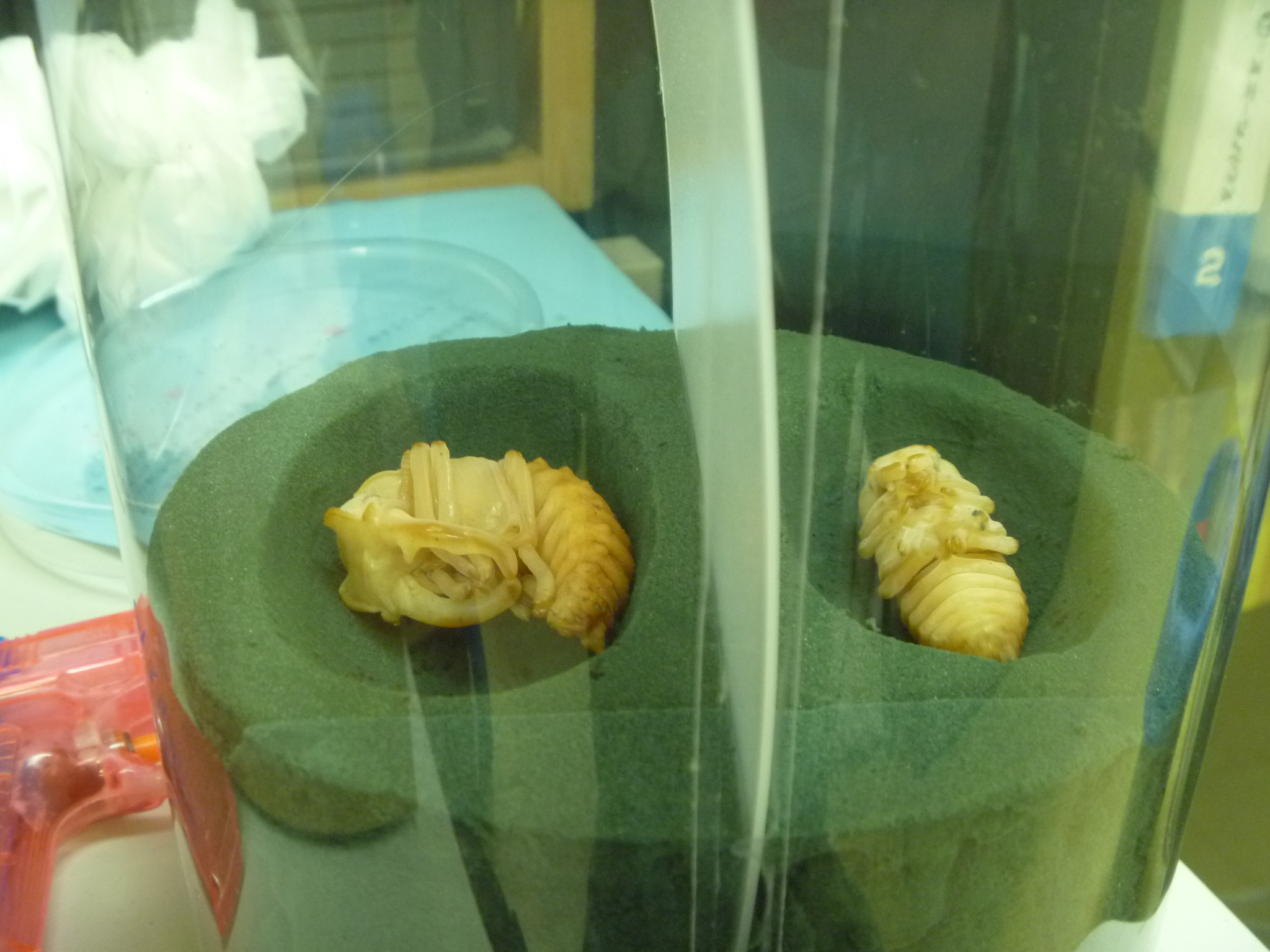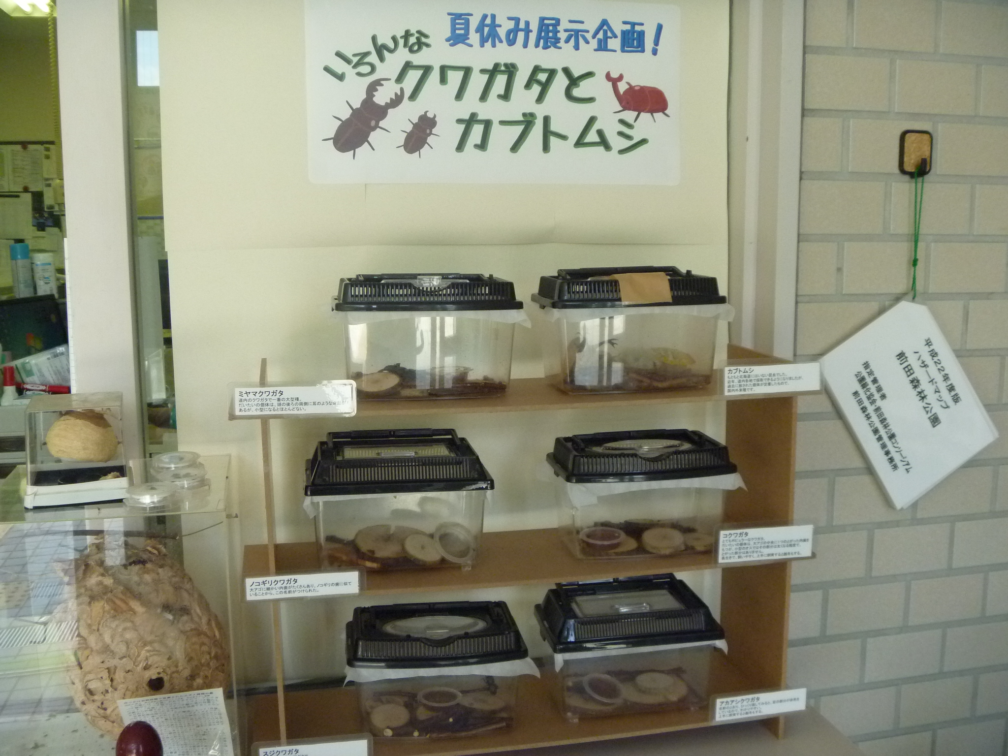 夏休みも残るとこあとわずか。 只今、前田森林公園管理事務所では生きているいろいろなクワガタ&カブトムシを展示中です。 また、個人的に飼育しておりましたミヤマクワガタのオスとメスのサナギも展示しております。 是非、観察に来ていただければと。 (早坂)