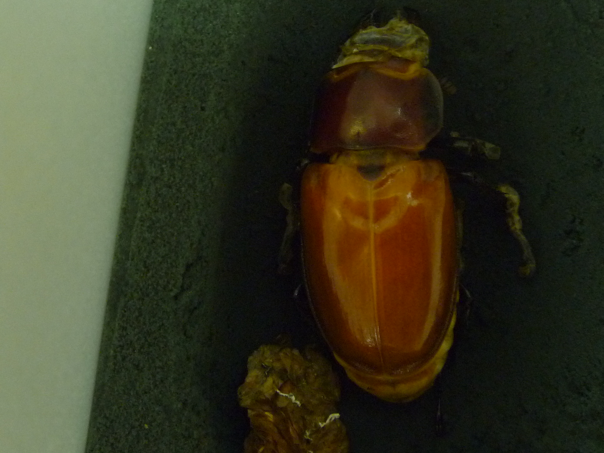 皆様こんにちは。 昨日お話ししていた、ミヤマクワガタのメスのサナギの件ですが、今朝出社してみると・・・・・ 脱皮の途中で、ほぼ成虫になっておりました。 オスのほうは、まだ日数がかかりそうですので、引き続き経過を観察していただければと。 (早坂)