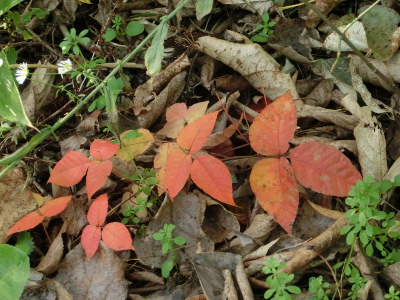 ツタウルシです。ウルシの仲間は紅葉がきれいですがかぶれることがありますので触らないようご注意ください。