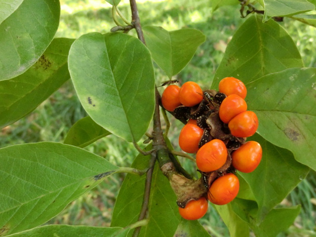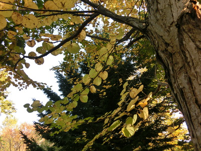 カツラの黄葉もじわじわ。色もきれいですが、是非、香りをかいでみてください。