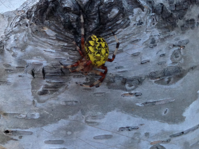 この穴の主人は確認していませんが、シラカバにこのようにもぐる虫に、ミノドヒラタモグリガやカバノモグリバエというヤツラがいるそうです。