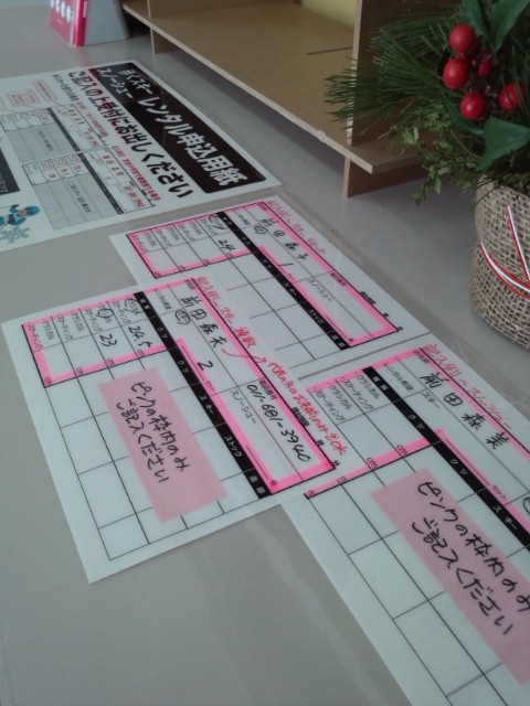 借りる方法は簡単です。貸出用紙に必要事項をご記入頂き料金と共に受付にご提出ください。