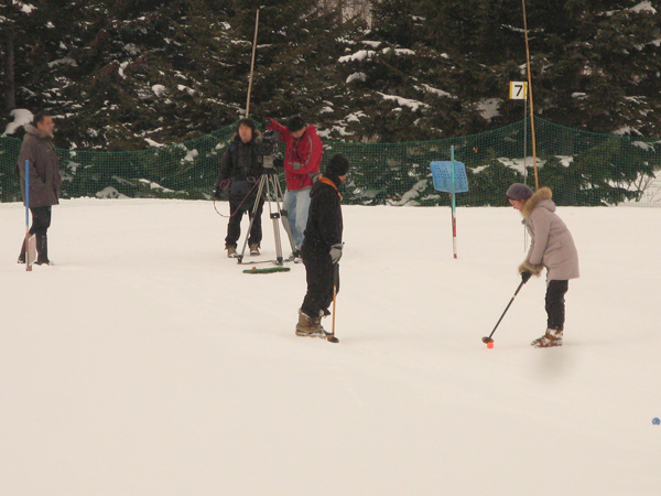 本日は、雪上パークゴルフの取材に、テレビ北海道の方がいらっしゃいました。
