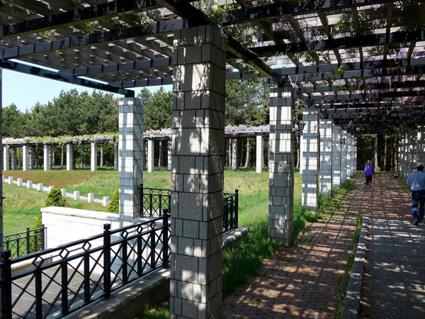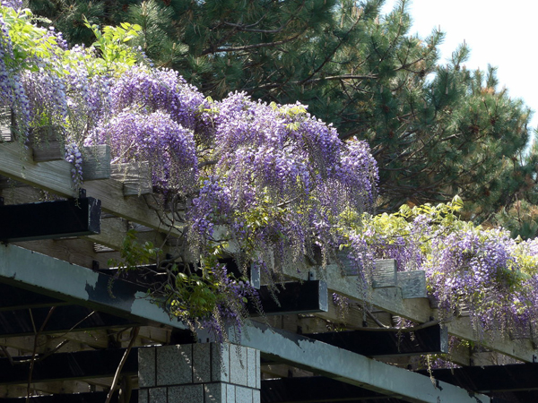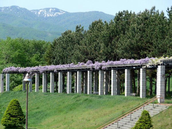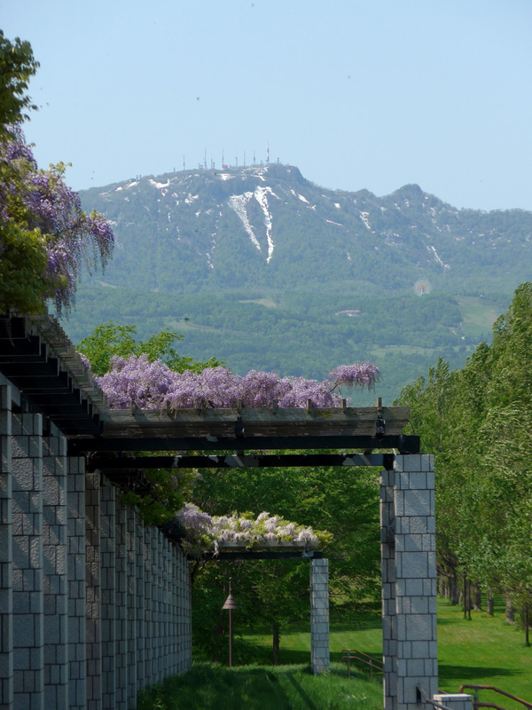 例年より早い、フジの見頃となりました。現在9分~満開状態です。 まだ花房の一番先までは開いていないので、しばらくはお楽しみいただけると思います。 それでは、開花の状況を写真でご覧ください。 右下の写真、パーゴラ下の木陰は気持ちいいんですよね~。ベンチに座ってフジの香りを楽しめます。 まだ残雪の残る手稲山を背景に。 見頃時期にぜひお越しください。 (オオモリ)