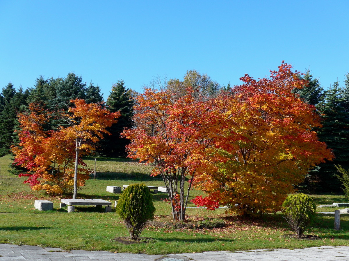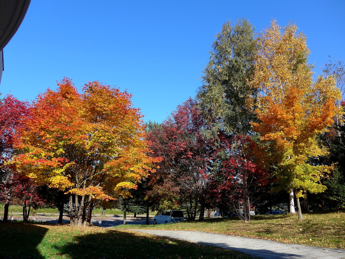 紅葉がすすんできた前田森林公園。 芝生広場の一角にある、エゾヤマザクラの赤、針葉樹の緑、白樺の黄色 これは右側が白樺、左側がナナカマド。ナナカマドがもう少し紅葉すれば最高の眺めになります 新川通側にある「休憩舎」周辺の紅葉もきれいです 残念ながら、カナールのポプラ並木はまだまだ緑です。黄葉するのはもう少し先かもしれません。 * * * * お知らせ * * * * 11月3日のカナール清掃、森のクリスマスリース教室の参加者募集中! * (オオモリ)