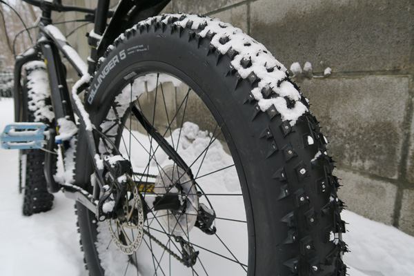 オレンジ色の部分は自転車専用エリア。ファットバイクというタイヤ幅4インチ以上の冬用自転車エリアです。こういうタイヤのものですね。