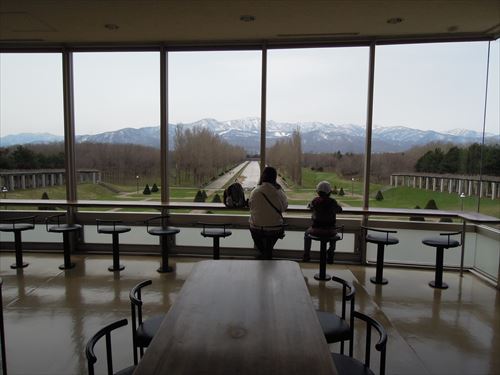 このような景色をガラス越しに眺められます。2階にはレストランがあり、軽食や飲み物、ビールや紅茶梅酒(限定)まで幅広くご用意しています。お弁当を持ち込んでのご利用もOKです。