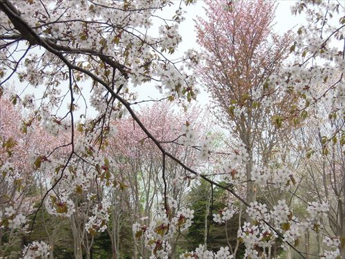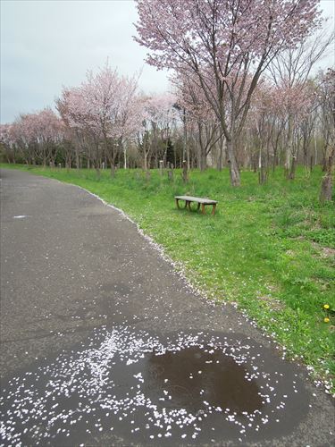朝から雨が降ったりやんだり、一瞬晴れてまた降ったりと忙しい手稲前田方面、サクラが真っ盛りです。