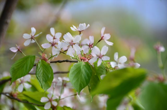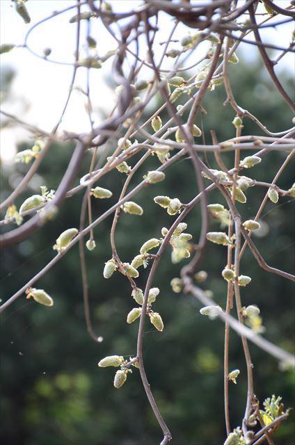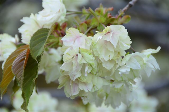 花木園のサクラ 散りながらも花が少し残っており