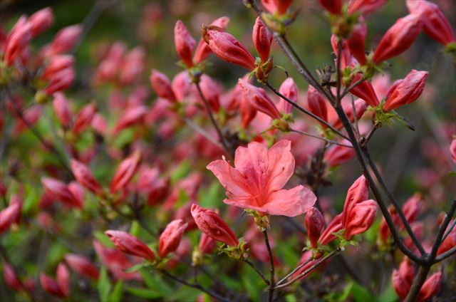 新川駐車場側の「休憩舎」のそばでは、ヤマツツジが咲き始めていました。