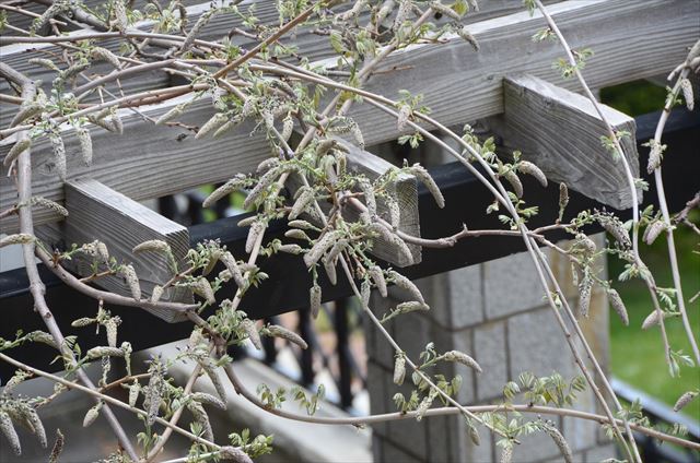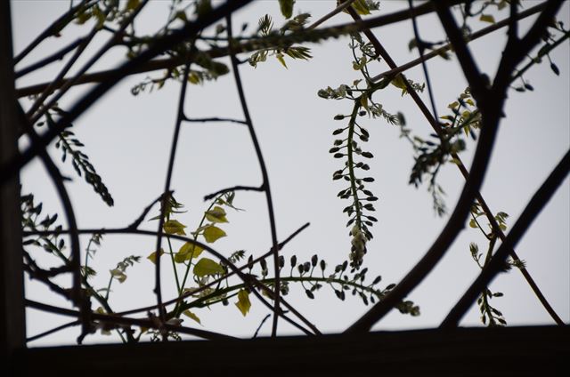 強風が吹き荒れる本日、木々がざわめく園内よりフジの開花状況のお知らせです。