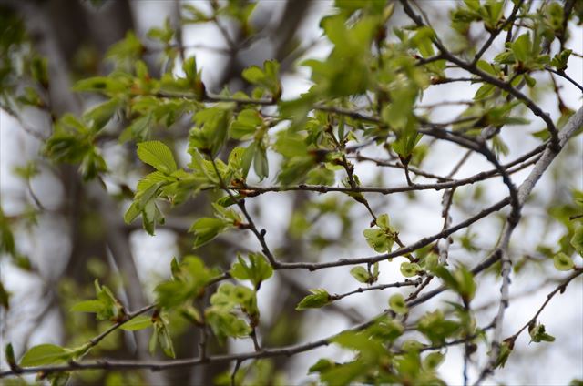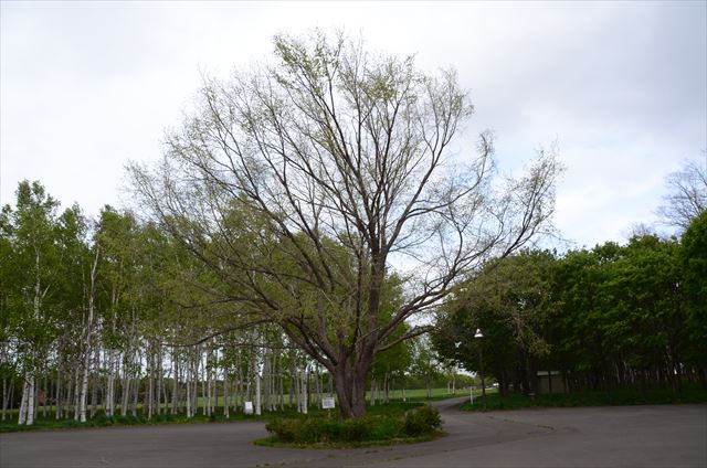 めばえの塔からまっさきに目に入る大木のハルニレの芽吹きもすすみ