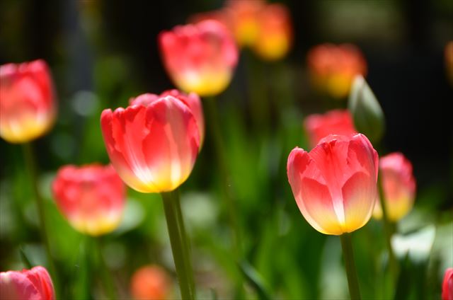 さくらんぼ飴のようなおいしそうなカラーのチューリップ。