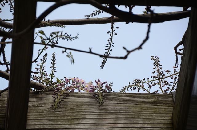 ラウンジを背にして右列の藤棚の、まんなかあたりで咲いていました。