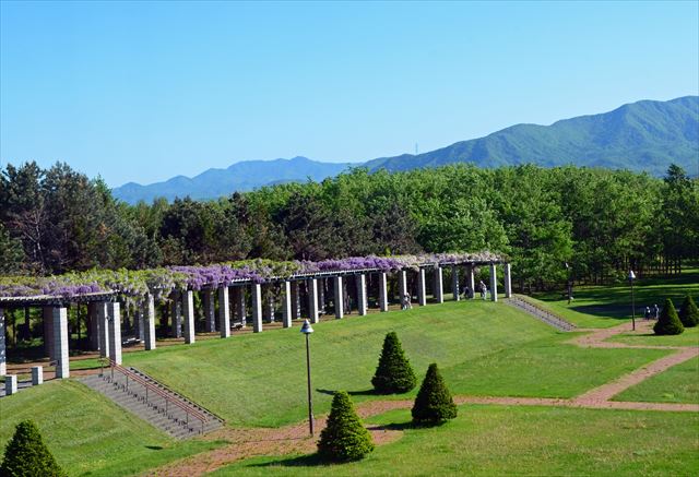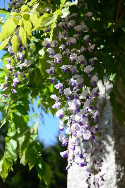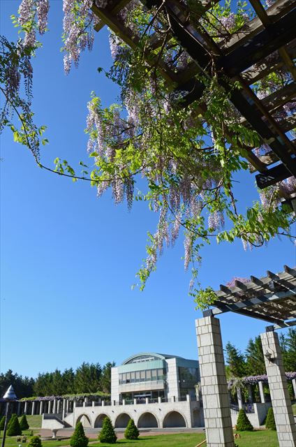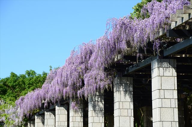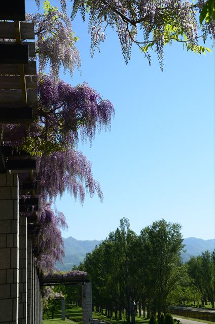 青空が広がり運動会びよりの本日、前田森林公園ではフジが見頃を迎えています。