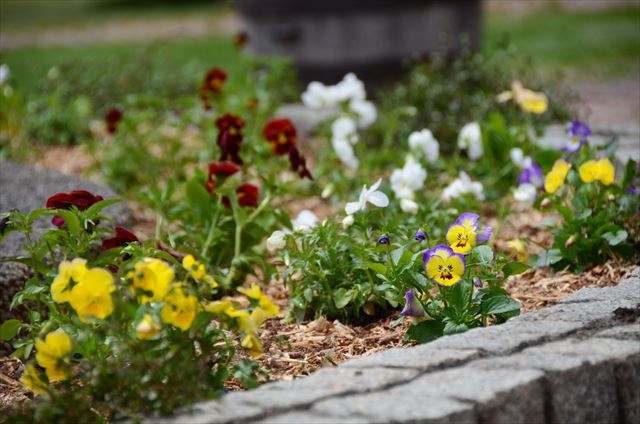 それから、先日展望ラウンジ前の噴水まわりにビオラなどの花を植えました。