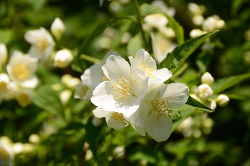 ラウンジ裏だけに咲いているバイカウツギを観察して