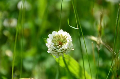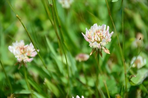 アカツメクサ、シロバナノアカツメクサ、クローバーの違いを観察したり