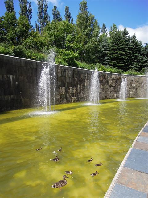 昨日は、壁泉の池のほうにマガモの親子がいました♪
