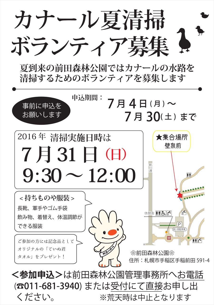 夏の清掃は、ポプラの綿毛などが藻になり茶色くなったものを掃除するという、とてもスッキリする作業となりますので、ぜひみなさまふるってお申し込みください!