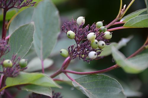 緑の葉のほうに、たくさん玉がくっついていました。母種であるシラタマミズキの名残です。