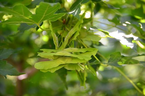園内での結実は、なんと6年ぶり! 北海道南部から本州の中部地方にかけて分布していますが、希少な樹木。翼果が水平に開いているのが特徴的です。