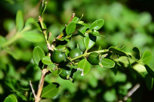 緑の葉に緑の実なのであまり目立たないのですが、秋になると成熟して黒褐色になります。