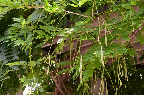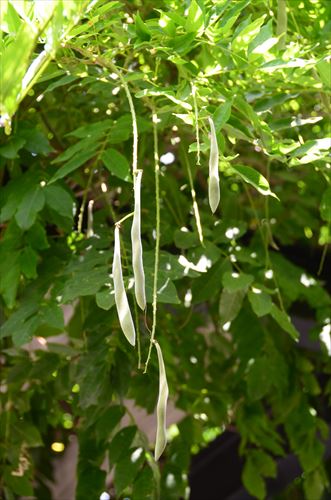 新川駐車場の近くにあるフジ棚で、マメのような実をつけていました。
