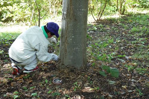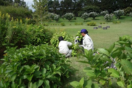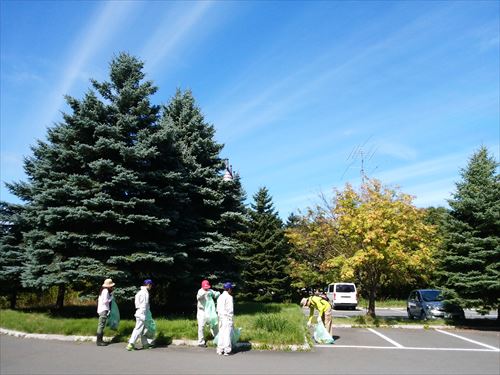 初日は、園地清掃から。広い園内を歩きながらゴミを集めました。