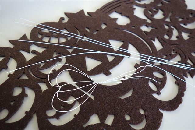 このようなワイヤーと、マニュキアのような特殊な樹脂を使って1つ1つスタッフが手作りしているのです。