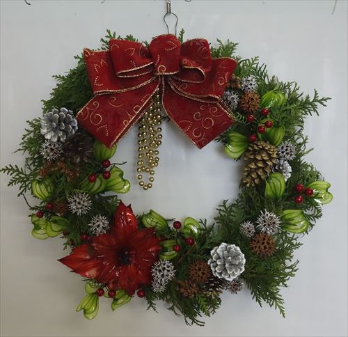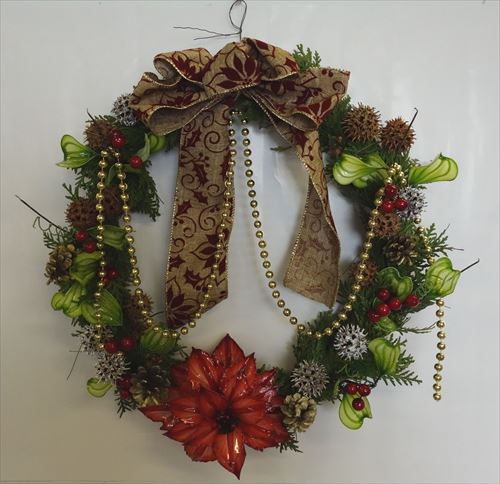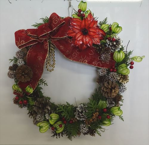前田森林公園のリースの特徴は、「アメリカンフラワー」を装飾につかっているところ。