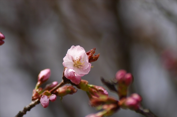 そんな天気ですが、野鳥の森の大変日当たりの良い場所にあるエゾヤマザクラが少しだけ開花しました。