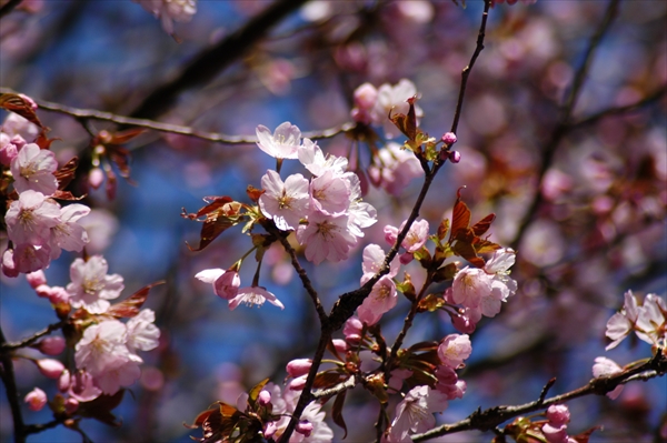 花と同時に葉が出てくるので、木の全体を見るとソメイヨシノのように「花だけ!!」という見た目には