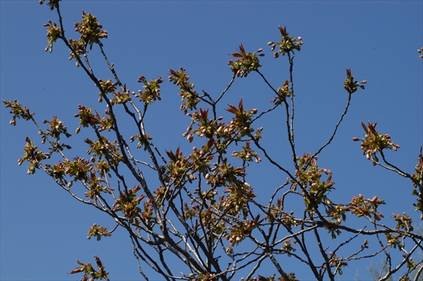 木の全体を見ると、まだまだツボミが固そうに見えます。今日の気温次第でどこまでほころぶか?
