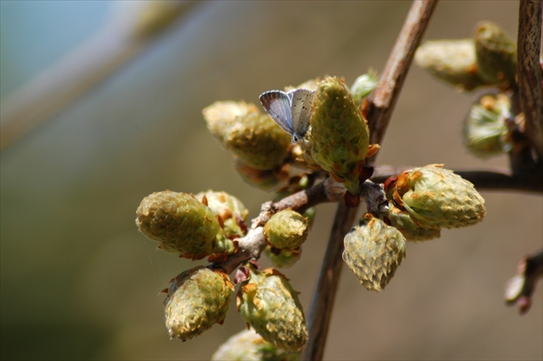 一昨日のフジのツボミがこちら。シジミチョウがとまってます。
