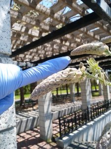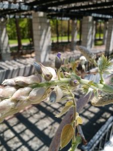 さて、久々に良い天気で草木も生長真っ最中です。フジのツボミの状態をみてみますと……