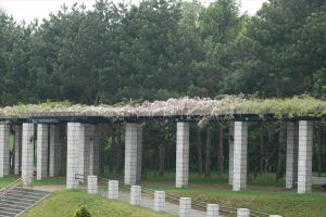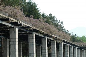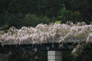 展望ラウンジを正面に見て左手側は日当たりが良く、淡いピンクと白のフジは結構開きはじめました。