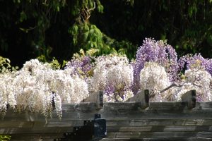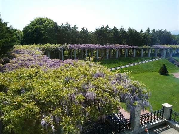 さて、本日10時頃のフジの様子です。大パーゴラの半分ほどが、丁度見頃となりました。