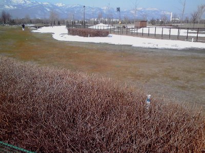 前田森林公園パークゴルフ場でも雪解けが遅れ、予定通りにオープンすることが