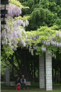 今日は曇りでしたが穏やかな一日でした。フジの花は今日も引き続き見頃。フジは見頃時期が1週間くらい続きます。今日の様子を写真でご覧ください。 パーゴラの下はフジの甘い香りでいっぱい。ベンチでゆっくり花と香りをお楽しみ頂けます。 今週末、少々天気が悪いようですが、フジの見頃は続きます。 ふじまつりもありますのでお時間ありましたらお越しください(*^_^*)