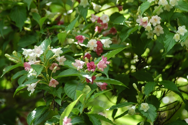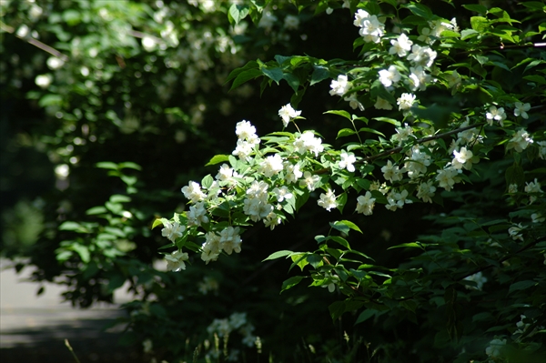 現在展望ラウンジ裏の園路にあるハコネウツギ(箱根空木)とバイカウツギ(梅花空木)が満開です。